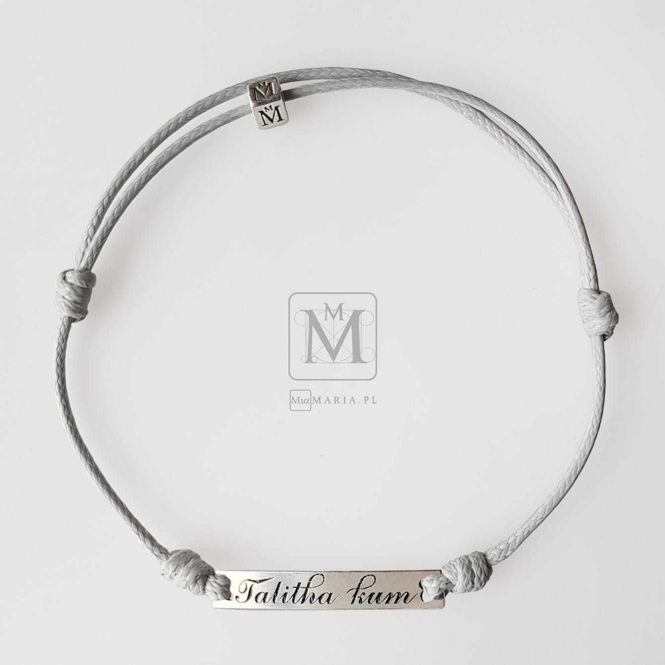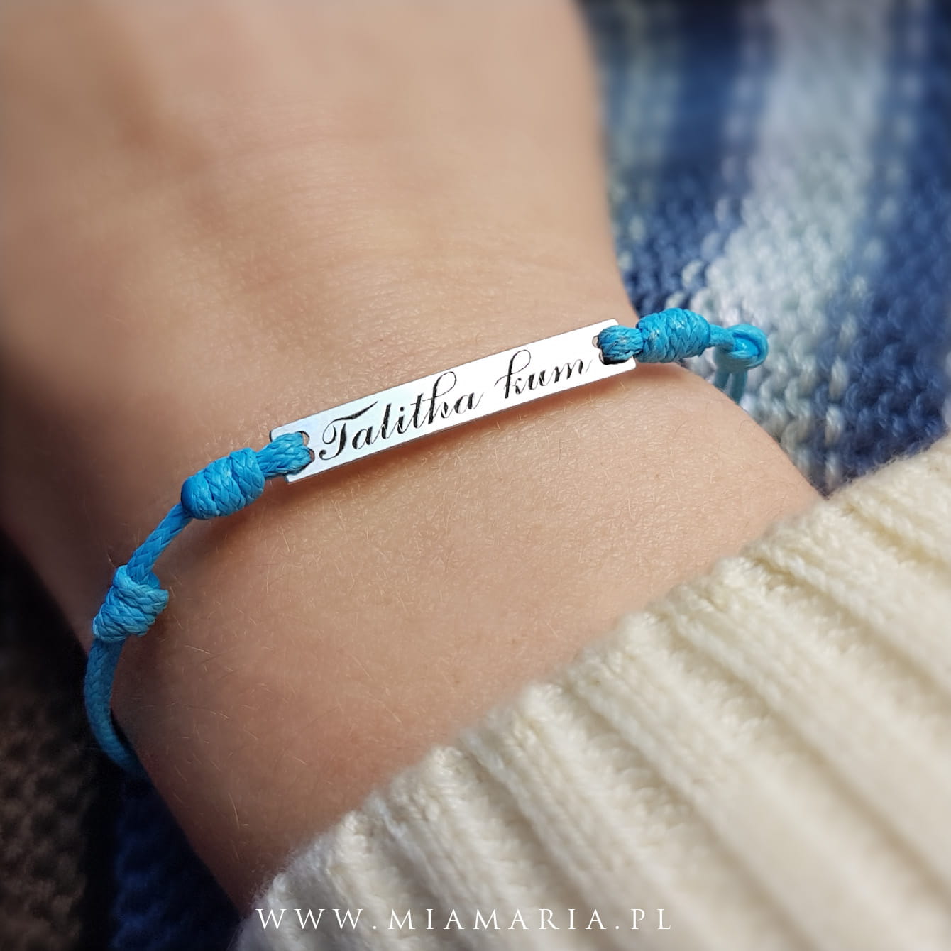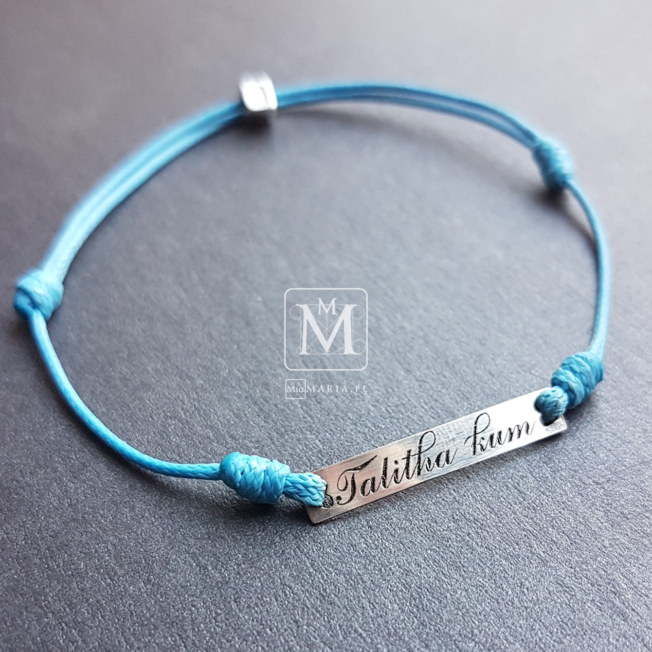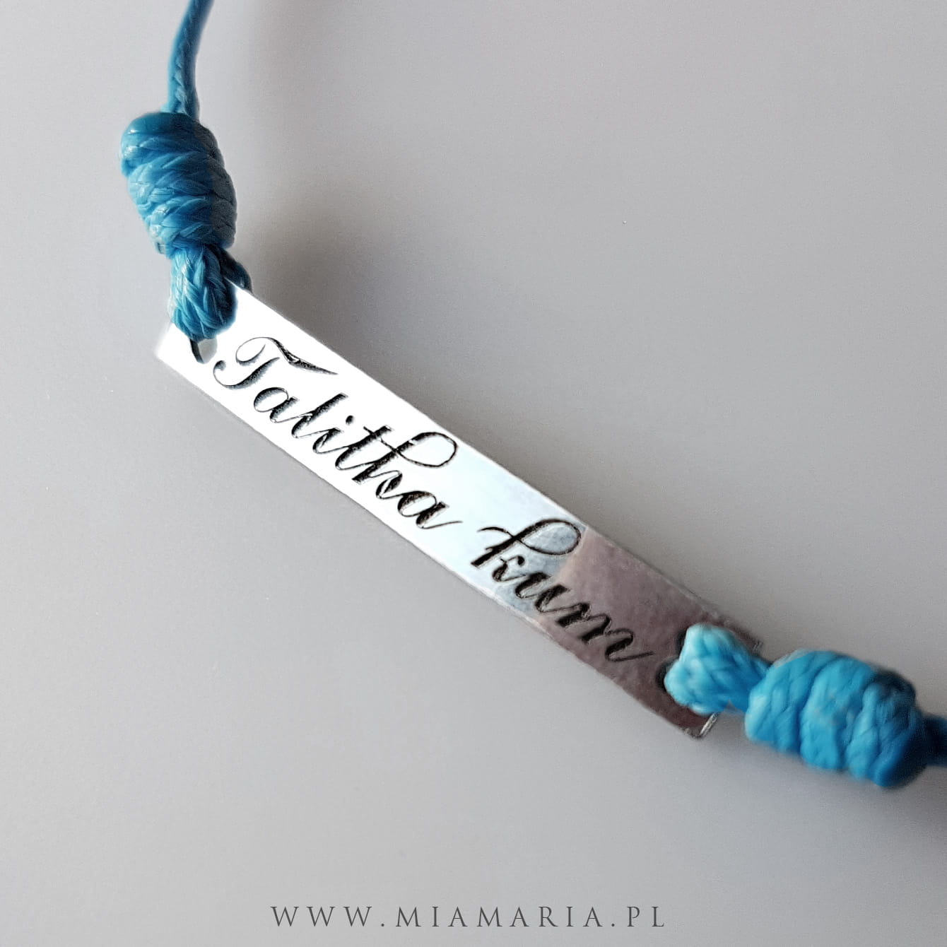 Bransoletka ze srebrną blaszką „Talitha Kum”.