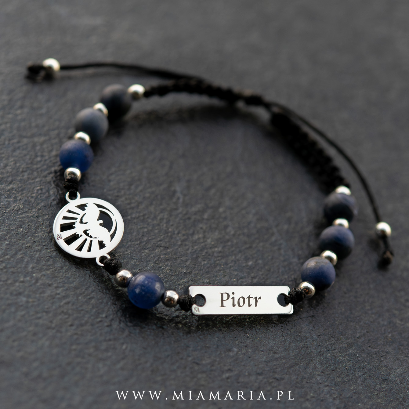 Bransoletka na rękę z Duchem Świętym i blaszką na własną dedykację (można też podać siglum biblijne).