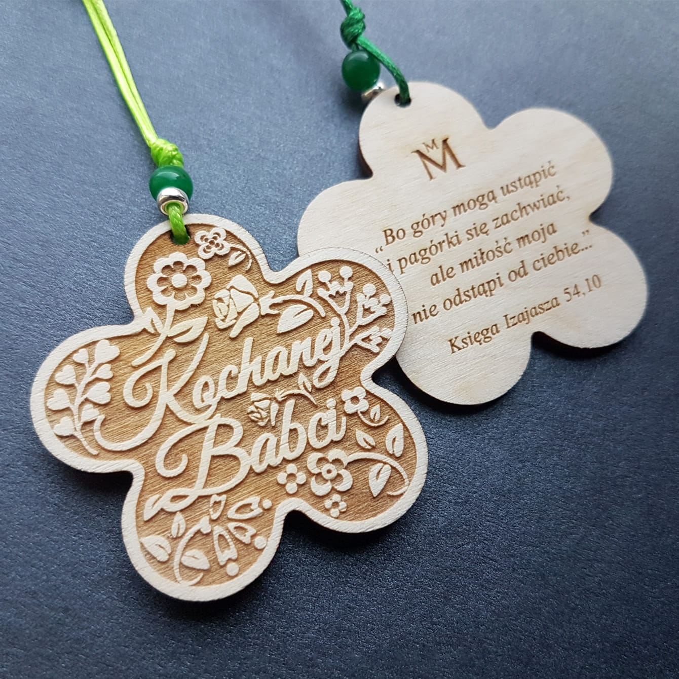 Sklejka z brzozy, oponka ze srebra próby 925 (bez domieszki niklu) oraz zielony fasetowany kamień jadeitu i sznurek jubilerski (kolor do wyboru)