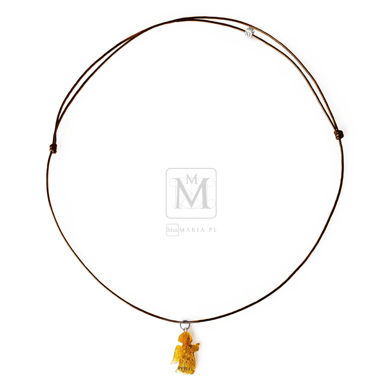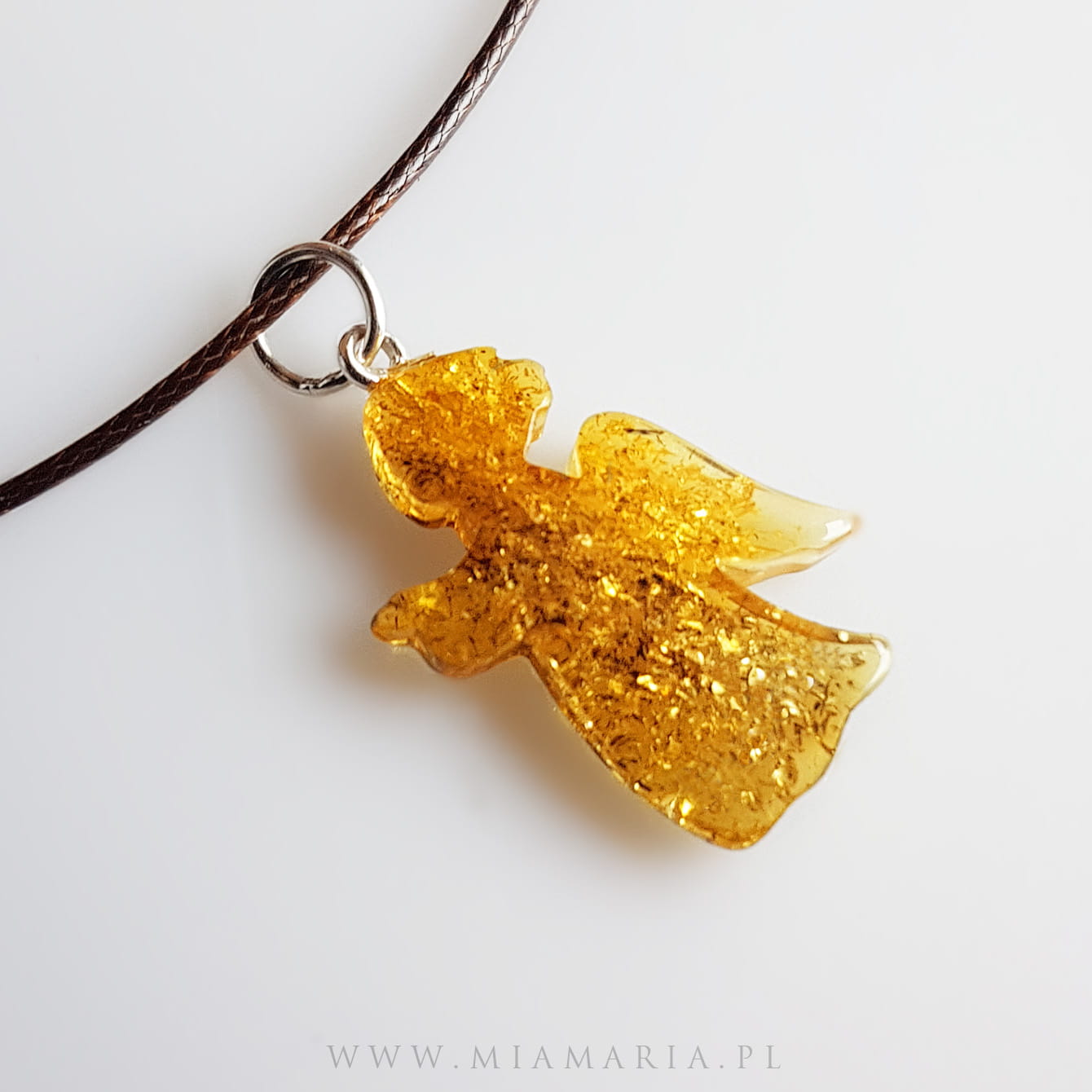 Srebro 925 (bez domieszki niklu) (kółeczko do aniołka, kostka Mia Maria), aniołek z bursztynu (16x23mm), sznurek jubilerski (1mm)