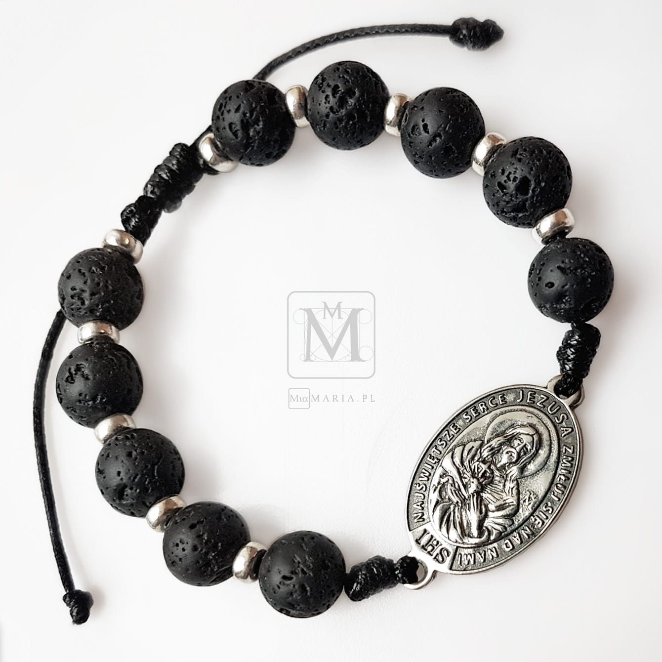 Materiały: Srebro próby 925 (bez domieszki niklu) (Medalik 22x14mm, przekładki 4mm), kamienie lawy wulkanicznej 8mm i wysokiej jakości gruby sznurek jubilerski