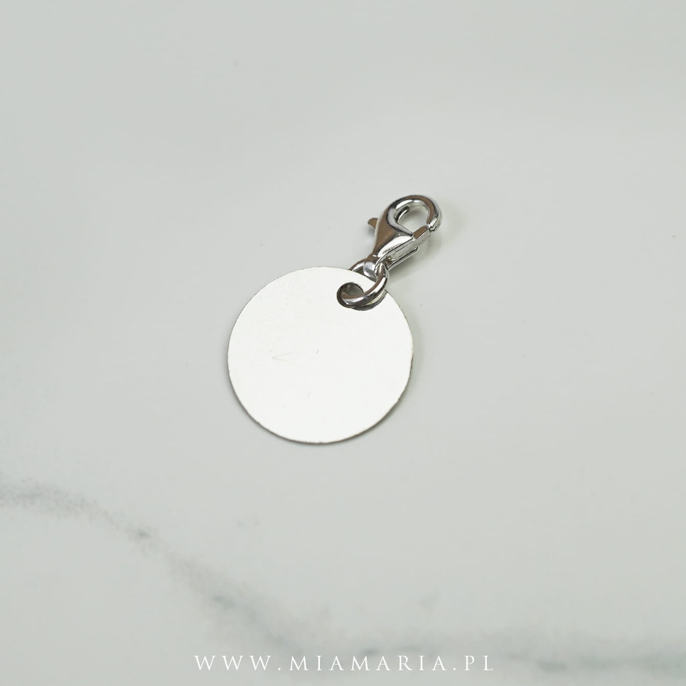 Srebro próby 925 (bez domieszki niklu): zawieszka okrągła (średnica 14mm), karabińczyk z kółeczkiem (12mm)